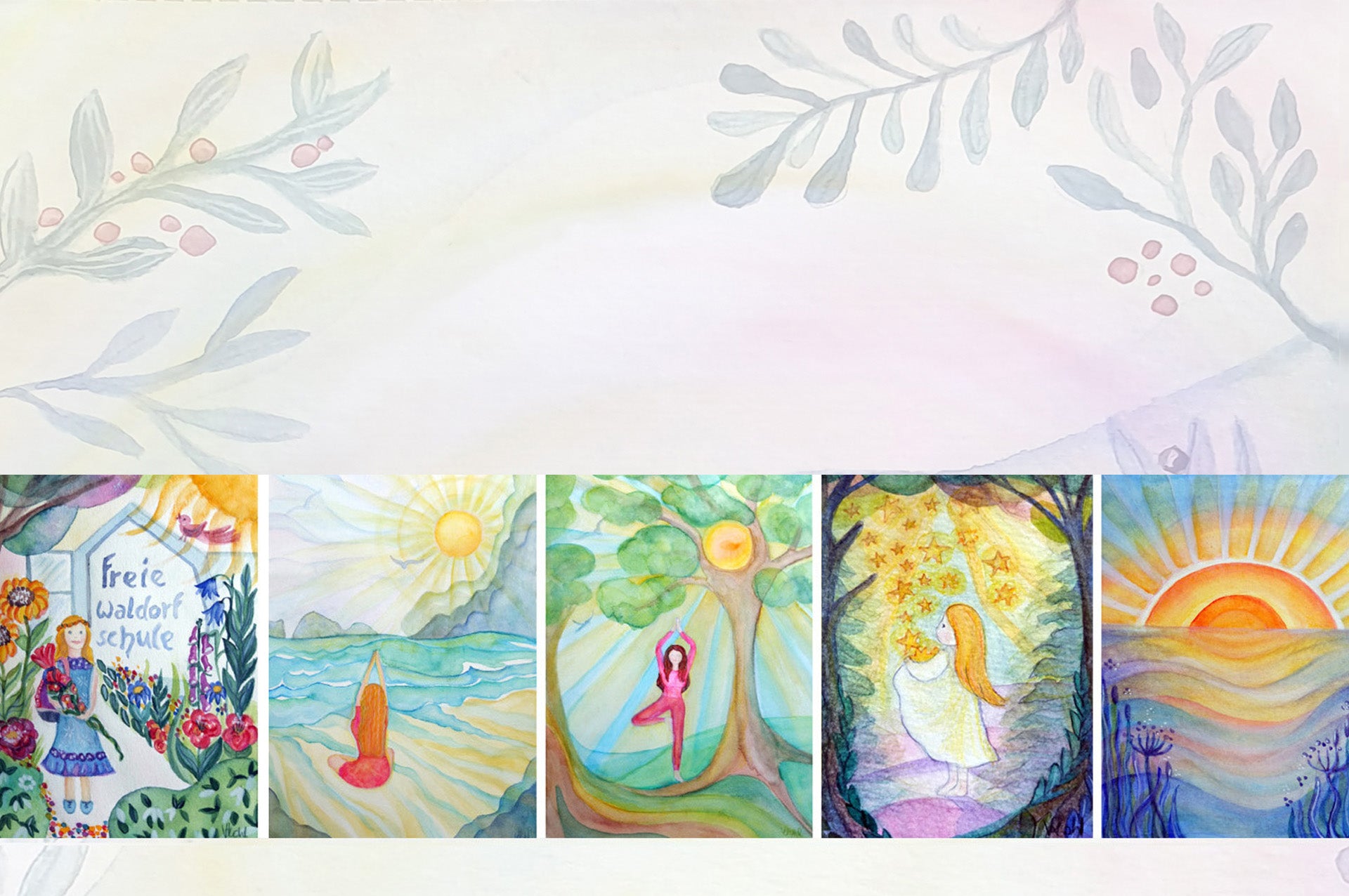 Ich arbeite hauptsächlich mit Aquarellfarben und verwickelten Motiven, die oft von der Natur, den Jahreszeiten und symbolischen Bildern inspiriert sind. Viele meiner Arbeiten sind im Umfeld der Waldorfpädagogik entstanden, andere richten sich an Menschen, die sich nach Ruhe, Tiefe und Verbindung sehnen.